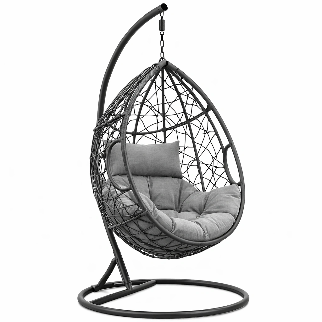 Hängesessel PE Rattan mit Stahlrahmen Schwarz Ei Form